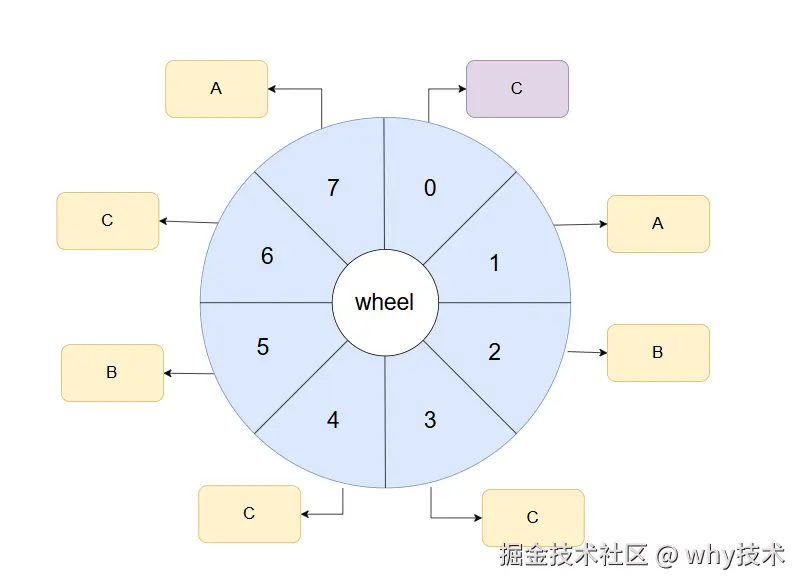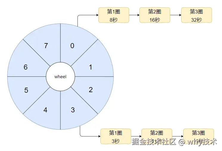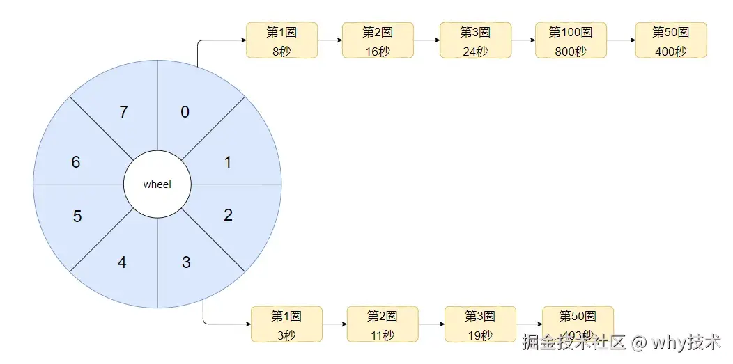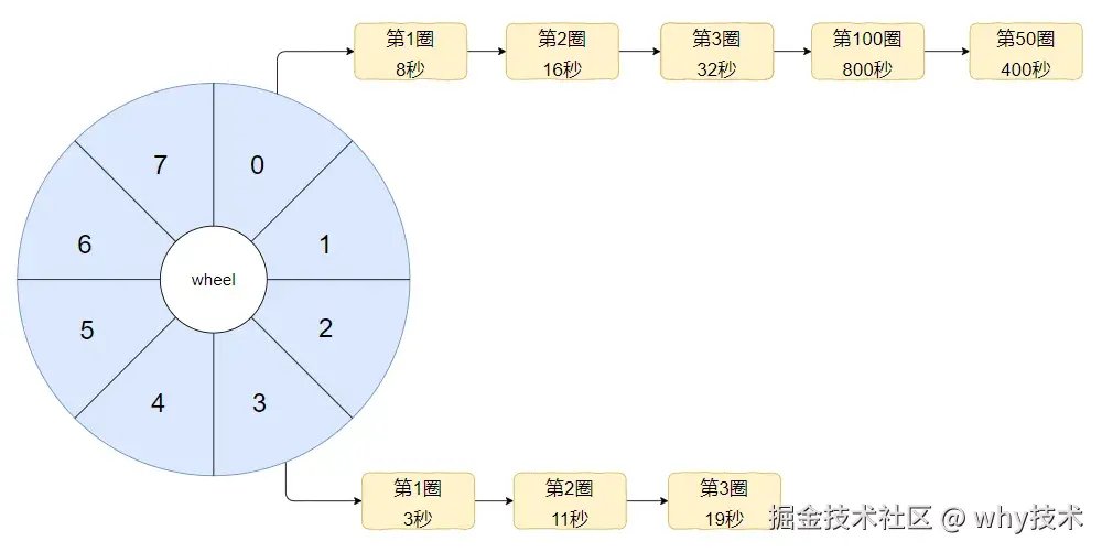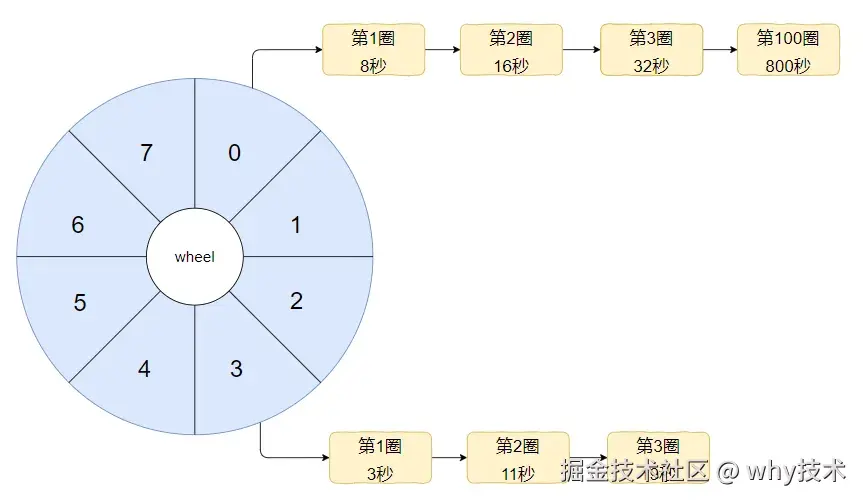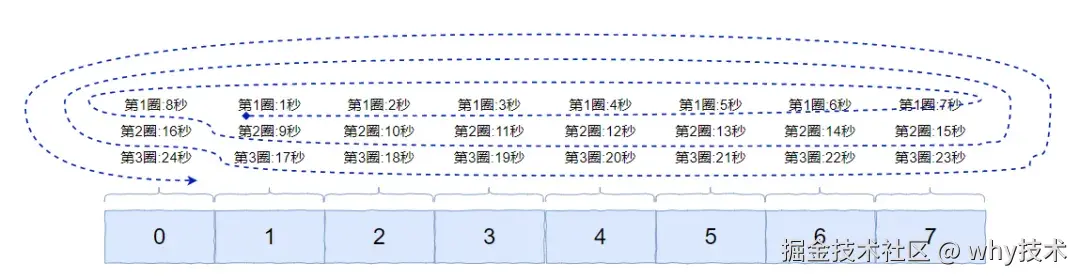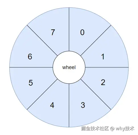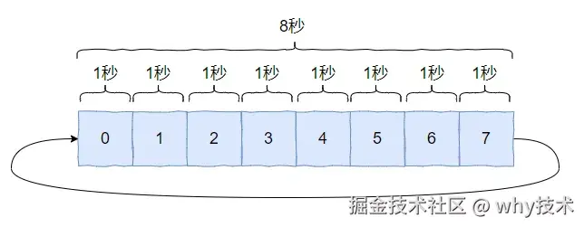 假设我们的时间轮一圈是 8s,这个时间你可以自定义,你要是喜欢 10s 也不是不可以。