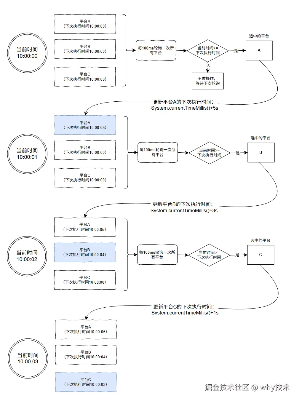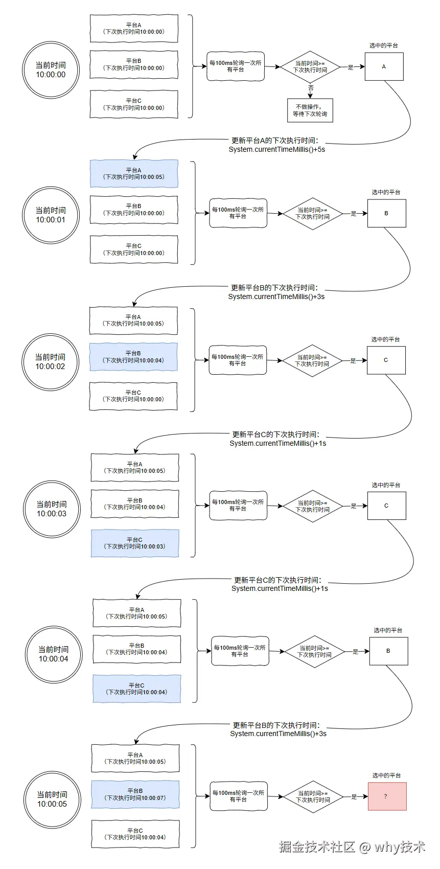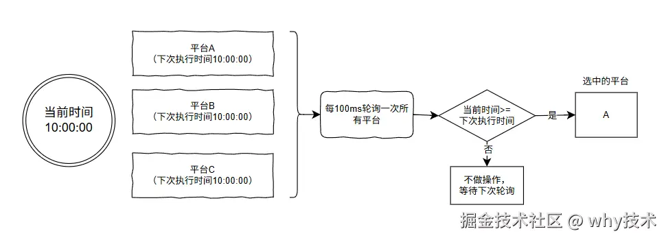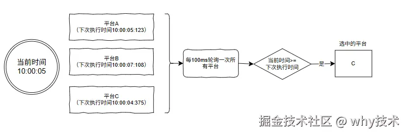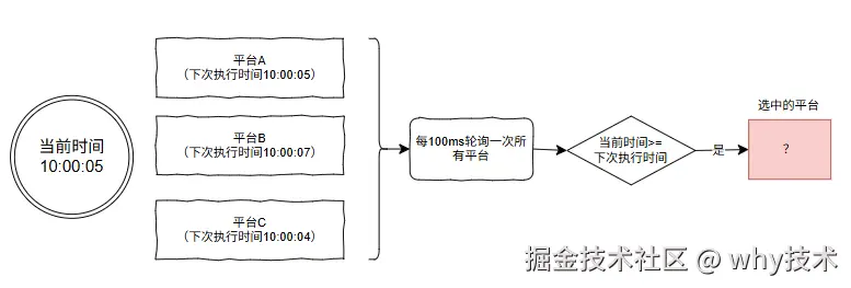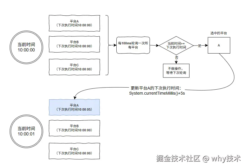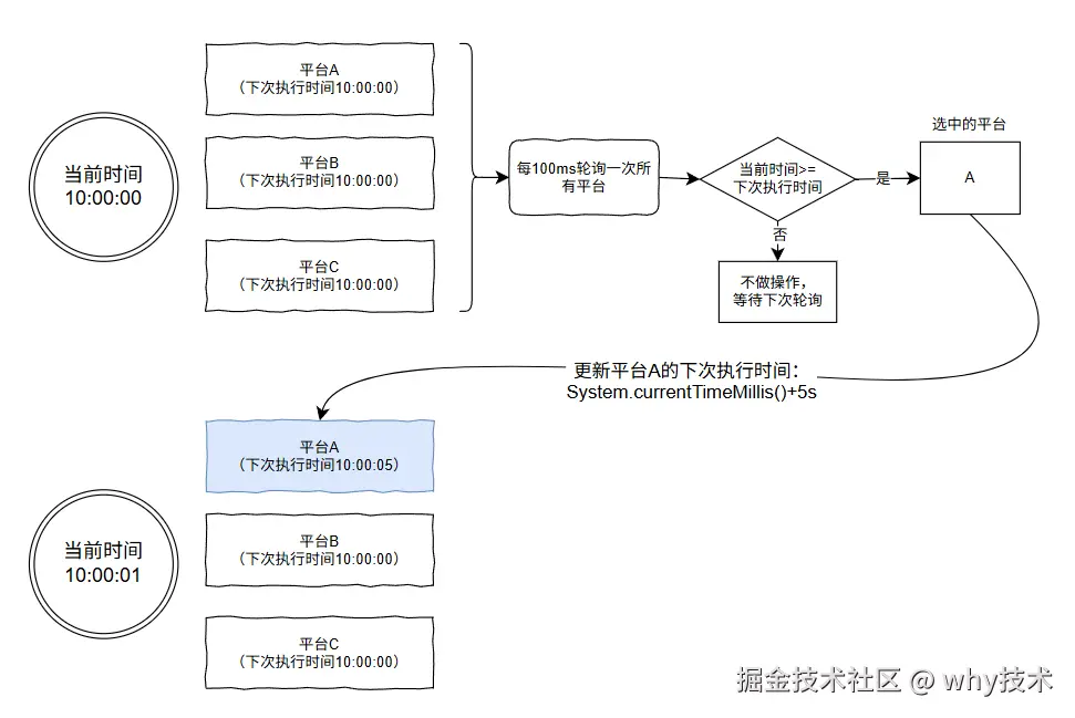 更新平台 A 的下次执行时间: System.currentTimeMillis()+5s