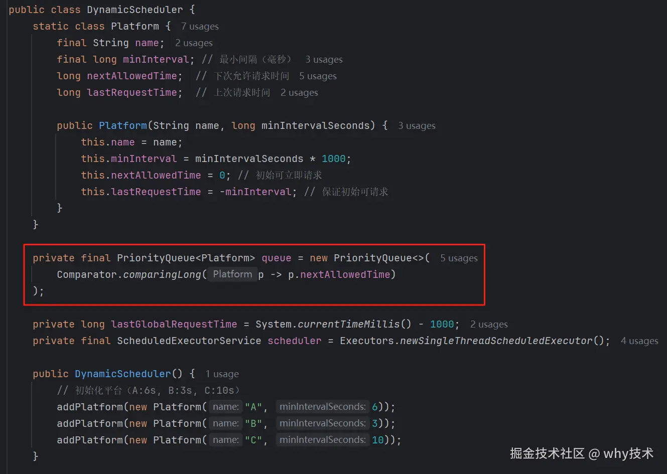 核心是基于 Java 的 PriorityQueue 实现:
