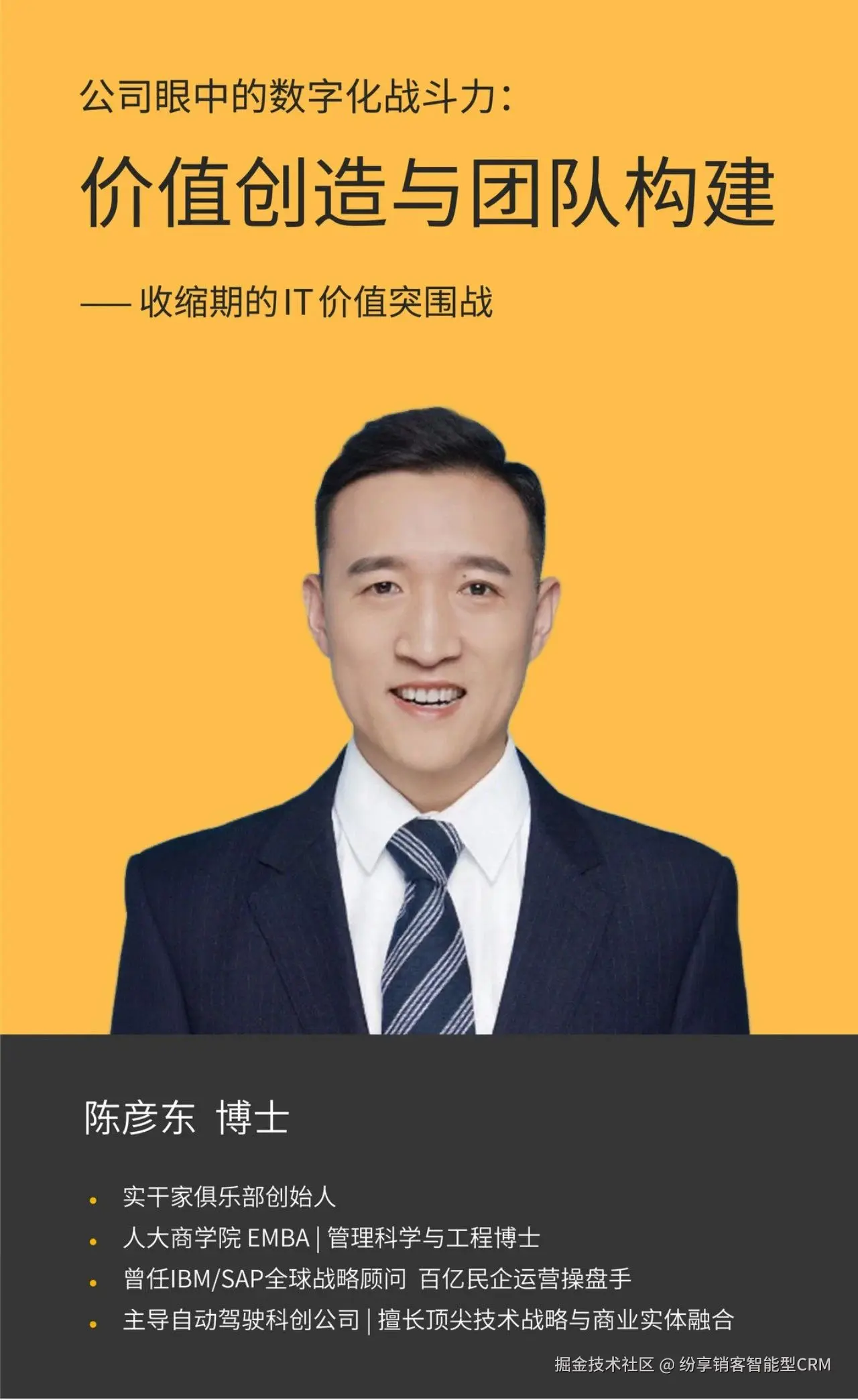最后要接受“战略永远在动态调整”——企业的战略本身就不是定死的,数字化更要跟着变。当前阶段,企业的重心是销售规模和毛利,就要对销售体系、销售流程进行梳理优化,并通过 CRM 系统进行固化跑通;下一个阶段,企业需要关注整体降本,就需要站在整体供应链的角度,看如何通过数字化技术实现整体链条的成本优化。不追求“一劳永逸”,能够伴随着企业不同发展阶段的战略需求动态调整、持续解决业务问题,就是最好的数字化战略。
