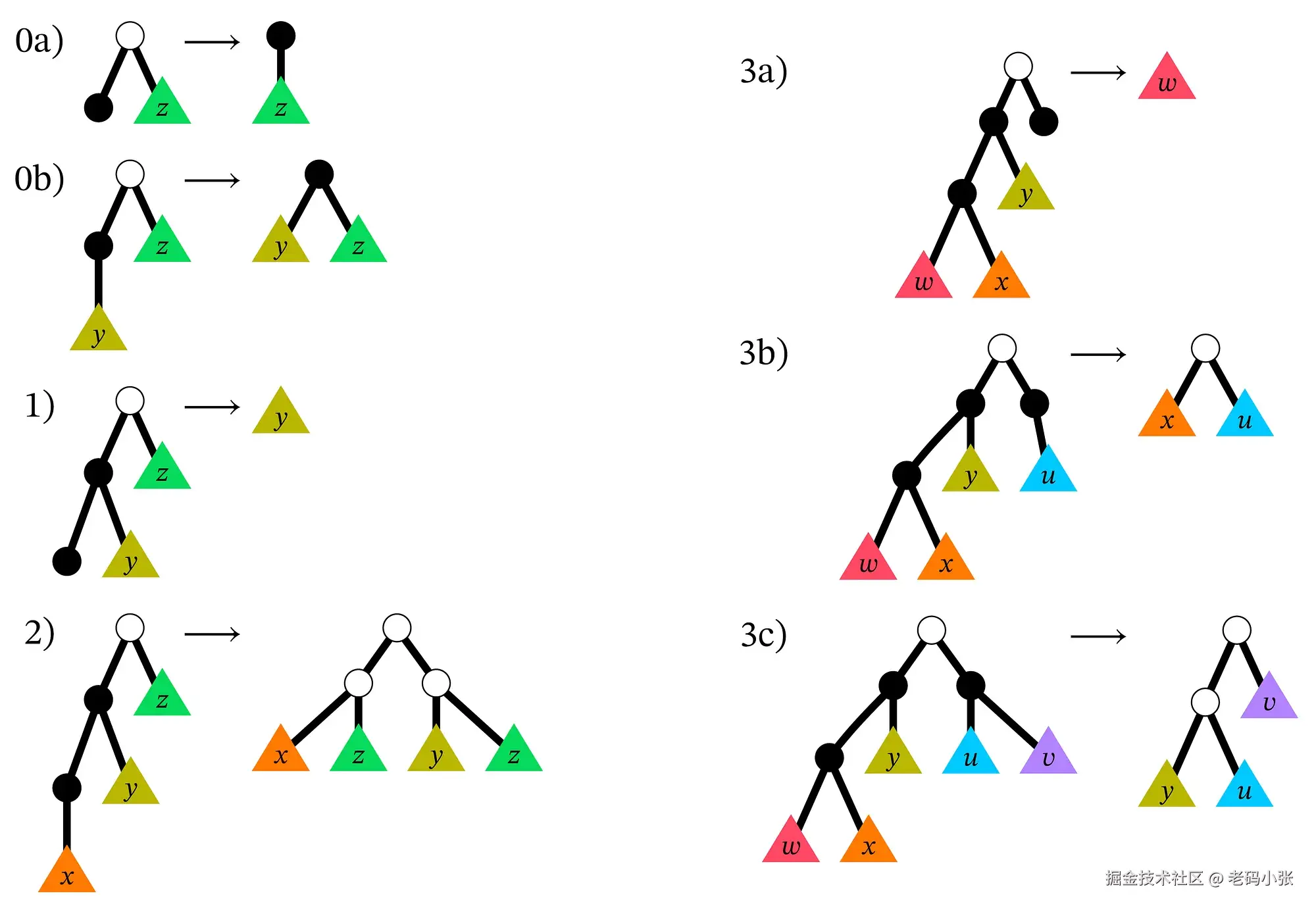 condition是true(即stem leaf):△ exprB exprA (stem leaf),中间是stem,递归下去变成△ exprB leaf c(这里的c是condition自身,但我们简化一下)。又根据规则,中间是leaf,返回第一个参数exprB。嗯?不对,应该是exprA啊。