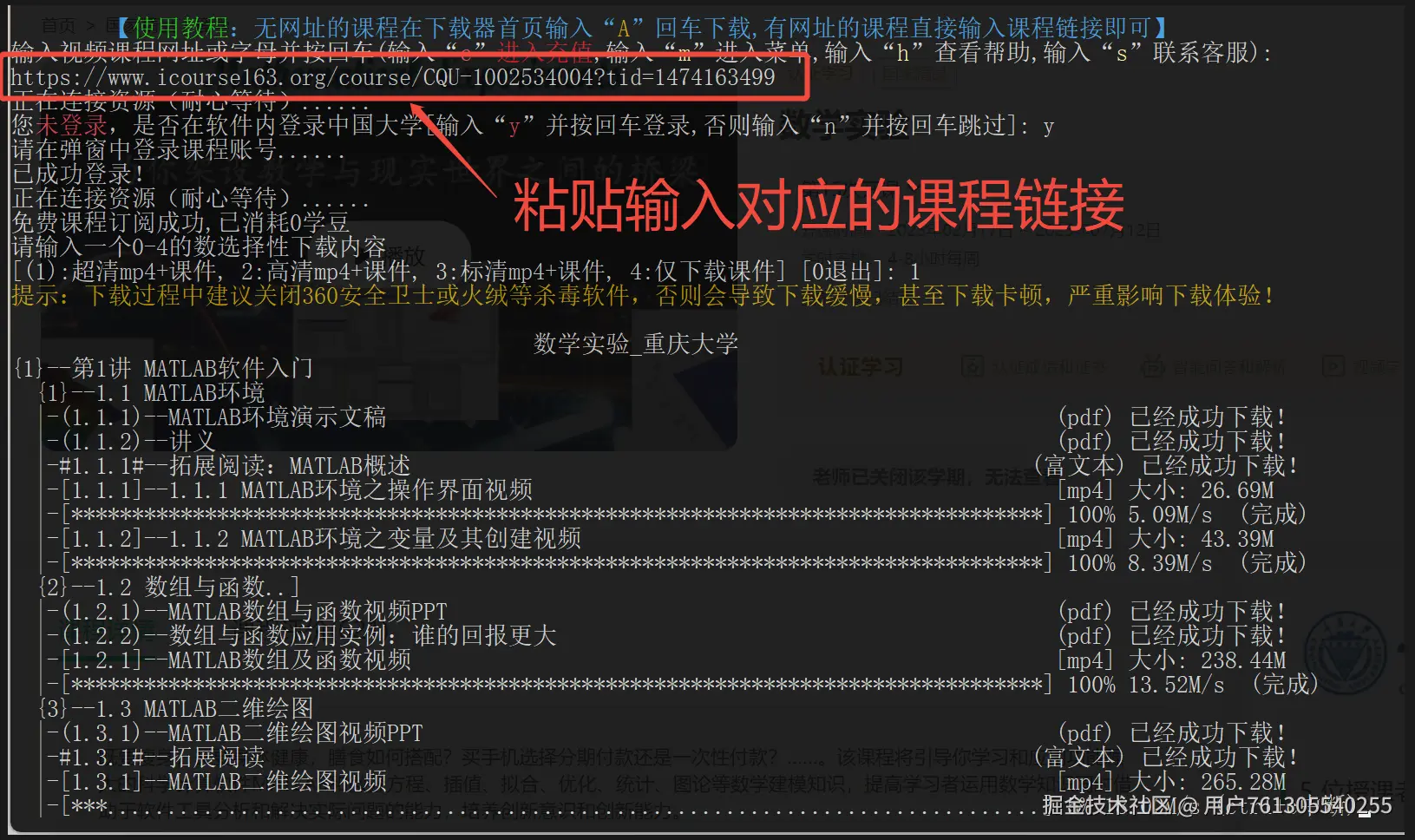 二、将复制后课程链接粘贴至下载器中,就开始批量下载视频课件了,等待全部下完即可