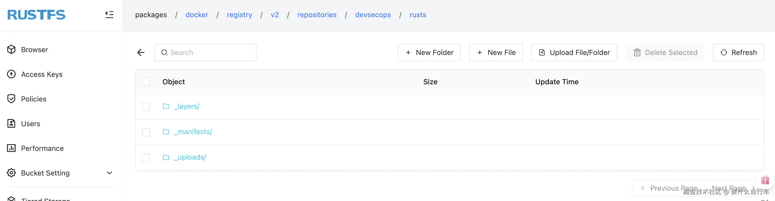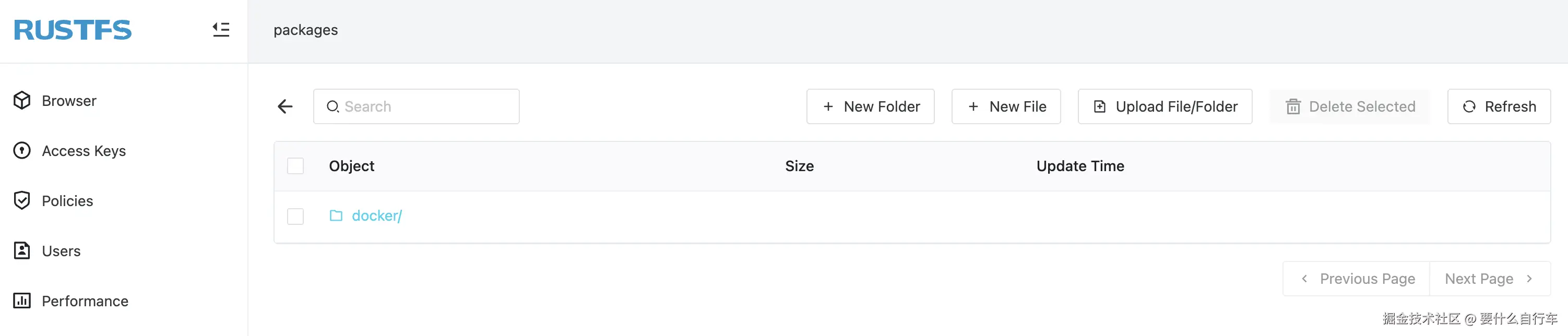 接着在 RustFS 的 packages bucket 中查看是否有数据: