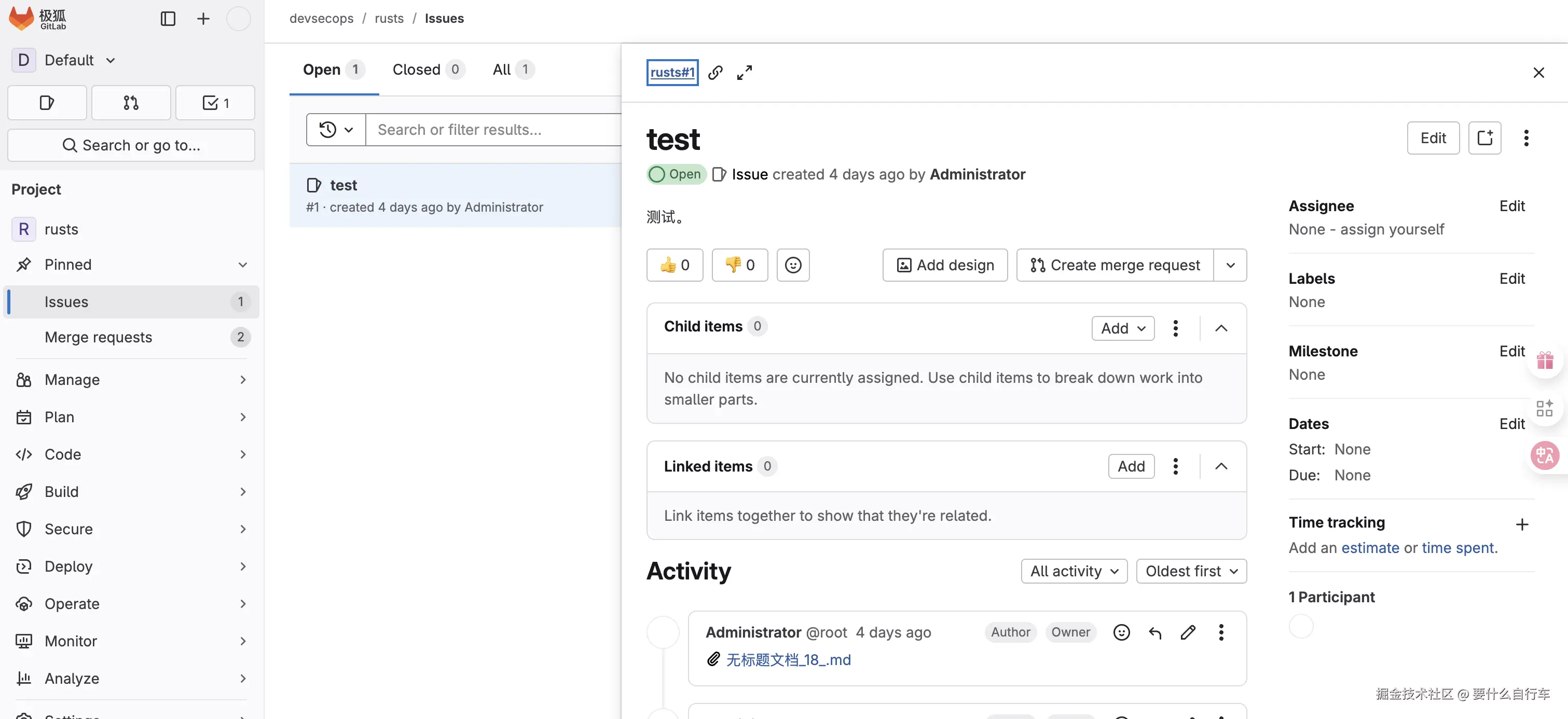 然后在 GitLab 实例上的任意项目的任意 issue 或者 MR 中上传一个文件: