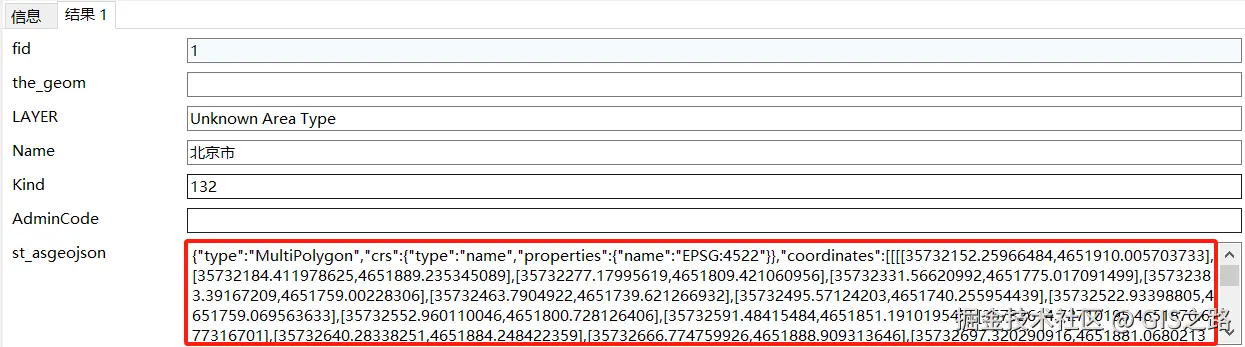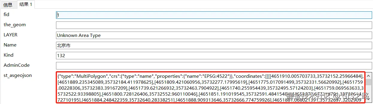 该方式也会返回几何列的空间参考ID(SRID)。
