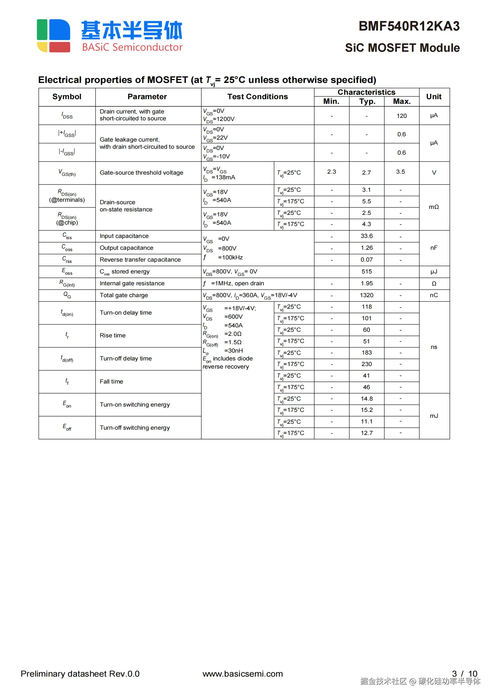 VSD=1.22V@18V驱动(Page 4)可能影响ZVS效率,建议外并SiC肖特基二极管