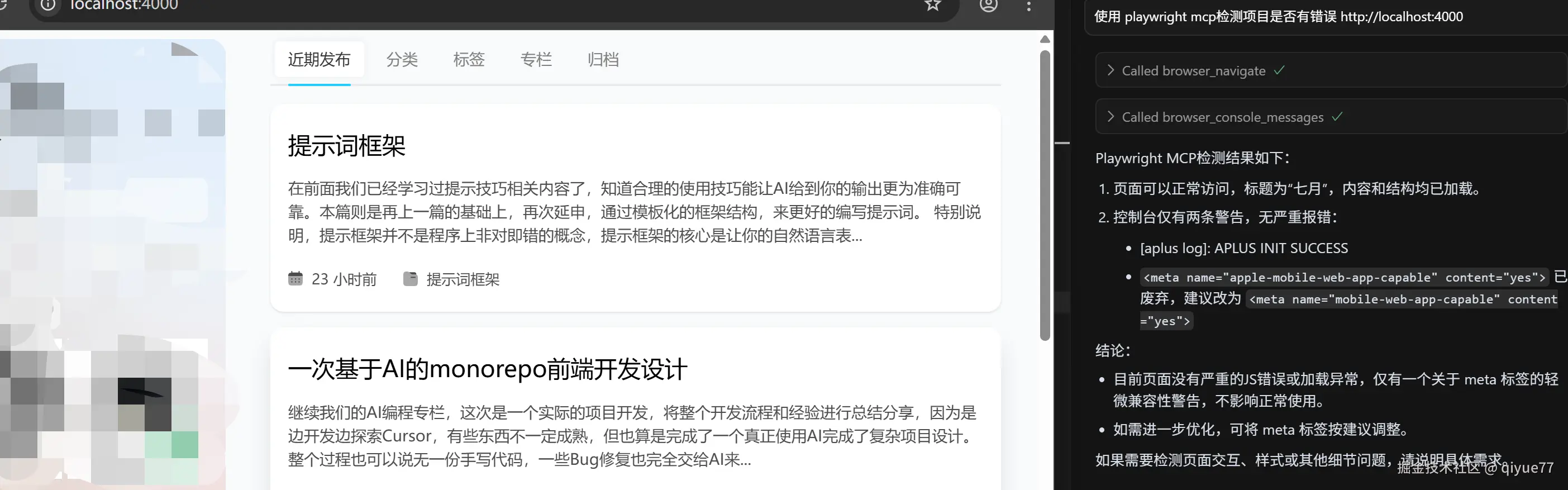 可以通过mcp来打通本地IDE与浏览器关系,一些浏览器异常可以直接用本地IDE的AI进行分析。