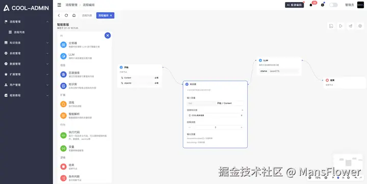 在智能化浪潮下,cool-admin 紧跟技术前沿,将 AI 编码和流程编排融入框架核心 。