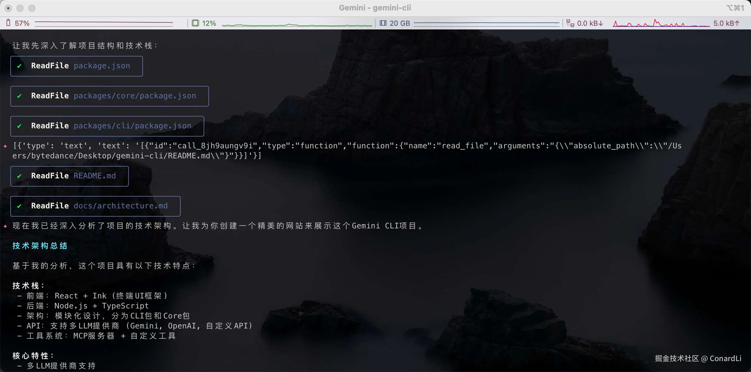 Gemini CLI 首先帮我们详细分析了系统架构: