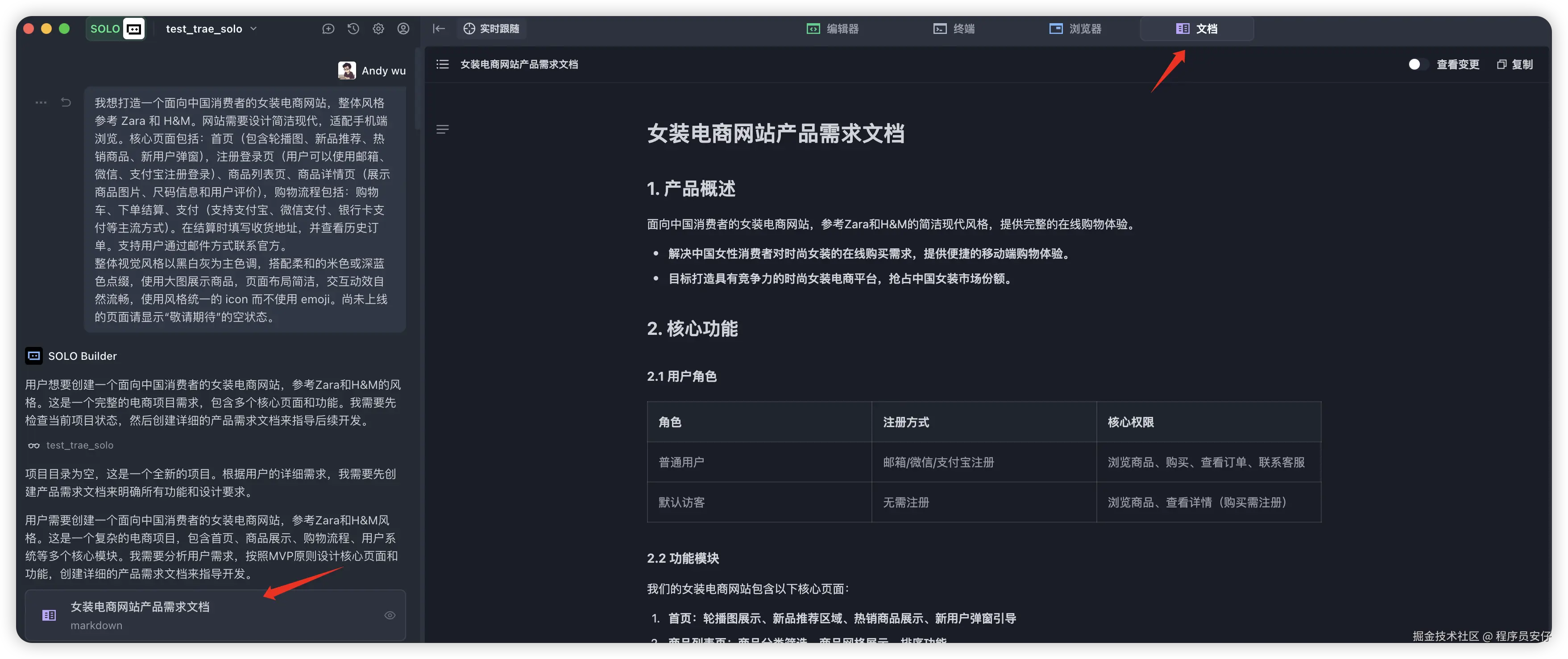 最让我感到意外的是,Trae AI 2.0 Solo 模式,远不止于上述这些,我还认真研究了下,它还明确地将产品经理和设计师纳入了它的产品交互中,什么意思?