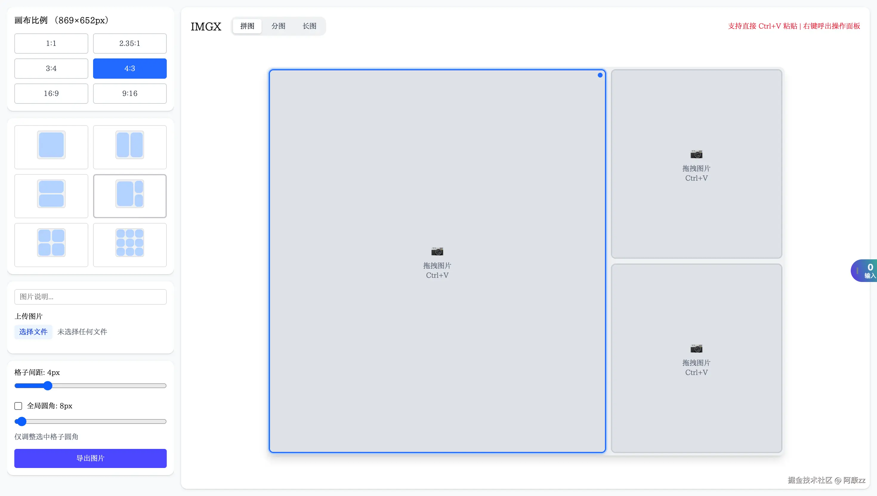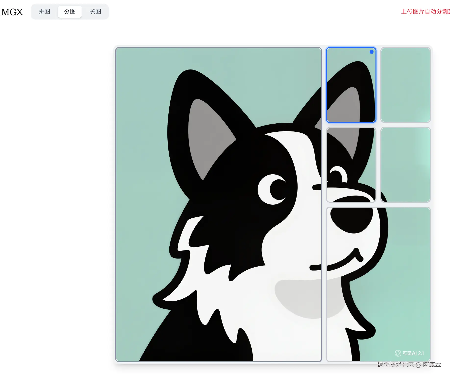 这样不管是分割格子,还是上传图片,分割图片,长图,本质都是处理这组数据。扩展性还是很高的,就算完全转为后端渲染也很轻松支持。