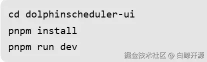 最后在dolphinscheduler-ui目录下运行如下命令,安装前端依赖并运行前端组件: