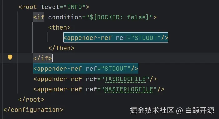 例如dolphinscheduler-master修改日志级别,以及在logback-spring.xml文件中修改如下所示: