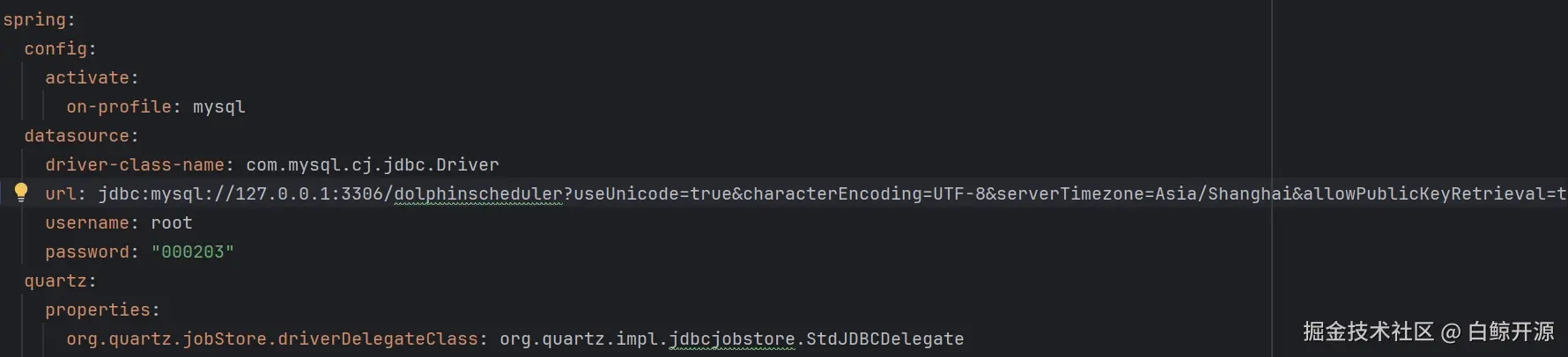 配置dolphinscheduler-alert、dolphinscheduler-api、dolphinscheduler-master、dolphinscheduler-worker的application.yaml文件和logback-spring.xml文件,把postgresql改为mysql配置并修改日志级别。