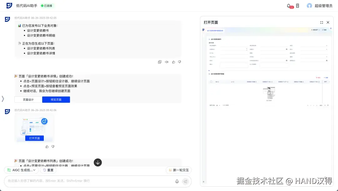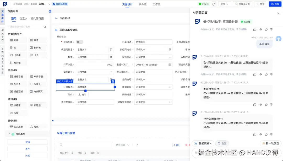 2. 对话调优:AI智能动态增删页面组件(列表/表单/基础组件)