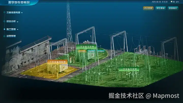 施工监测:快速更新的点云数据,推动变电站施工进度更新与质量监测,确保工程按计划进行。