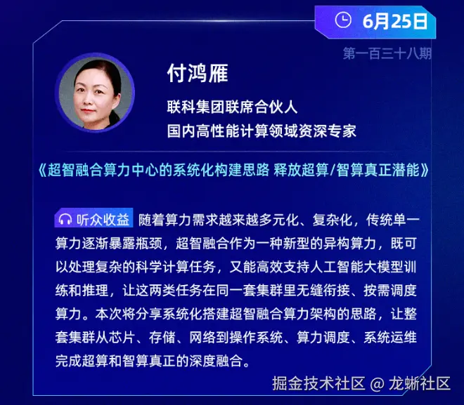 编者按:在数字经济蓬勃发展的今天,算力已成为推动社会进步的核心驱动力。超智融合这种新型的异构算力,正成为破解算力瓶颈、释放数据潜能的关键。联科集团加入龙蜥社区多年,一直与龙蜥保持深度合作,其超智融合算力管理平台 CHESS 与 Anolis OS 的完成了兼容适配认证。今天,联科集团联席合伙人付鸿雁结合联科集团 25 年深耕高性能计算的经验,系统化解析超智融合算力中心的搭建路径,实现整套集群从芯片、存储、网络到操作系统、算力调度、系统运维完成超算和智算真正的融合。本文整理自龙蜥大讲堂第 138 期,以下为本次分享内容: