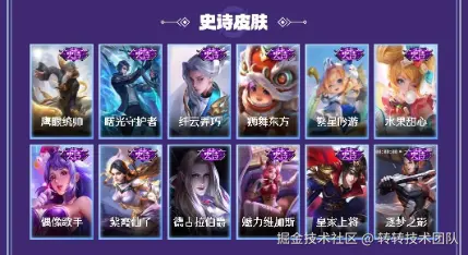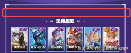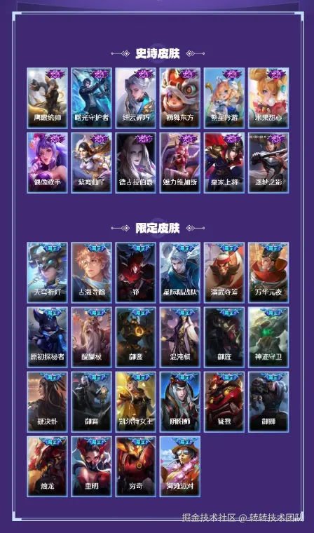 皮肤分类模块分开来看,可以按照皮肤类型分成若干个大类,如史诗皮肤、限定皮肤等。同时在每个皮肤分类模块前有对应标题。