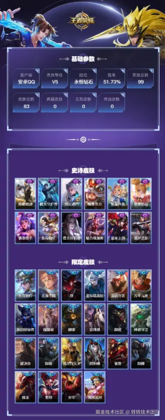 转转游戏账号业务中,以王者荣耀为例,用户关注的核心指标是:英雄总数、皮肤总数、特色皮肤等重点信息。但是在旧版商品列表展示的图片,是用户上传的图片,以及一些简单业务规则生成的图片,没有突出账号相关重点特色。