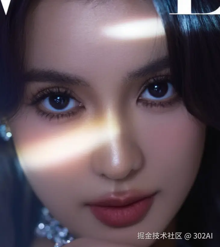 提示词:A close-up beauty photo taken by a cover magazine shows the model's skin shining brightly and she is wearing shiny jewelry. She looked straight into the camera with a mysterious expression. The picture was enveloped in soft, diffused light, emitting an ethereal glow. Her hair is smooth and wavy, with an overall blend of modernity and noble texture