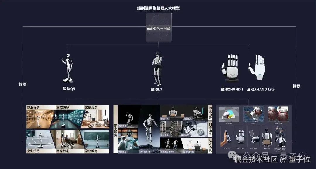 星动纪元在通用大脑的最新成果是端到端原生机器人大模型 ERA-42,这是业界首次:仅通过同一个具身大模型驱动全身灵巧——不但能做大动作,还实现了五指灵巧手的类人手操作能力,可灵活运用多种多样、形态各异的工具完成上百种复杂任务。
