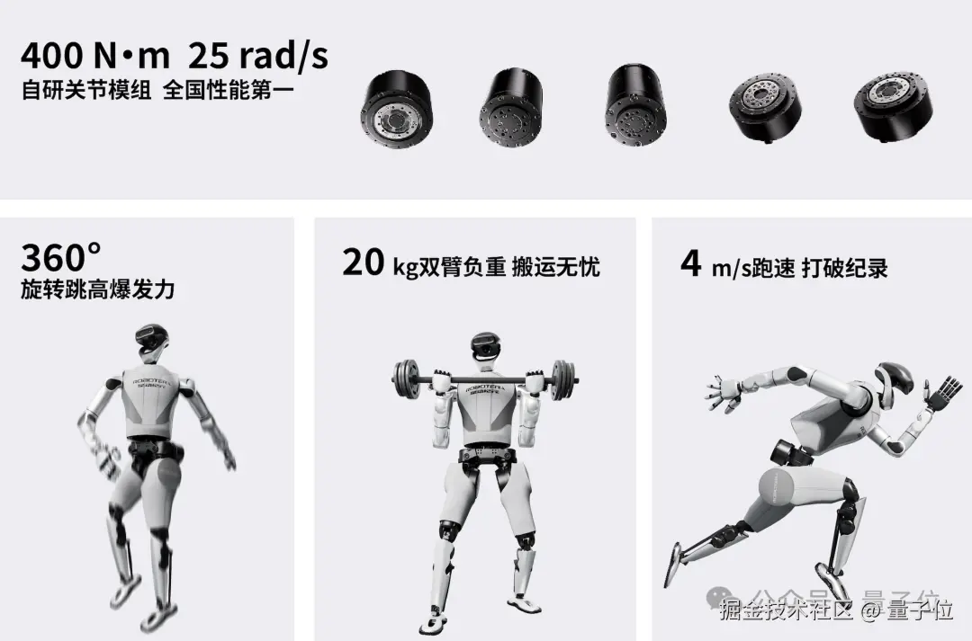 除此之外,它采用关节准直驱方案配合全栈自研模块化骨架,以保证长尺寸机器人足够轻量化并抗冲击。
