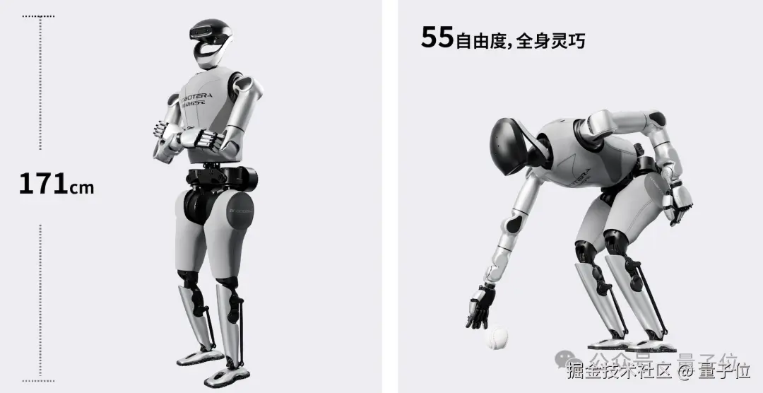 如此纪录和能力背后,除了可以推测的 AI 大脑,也离不开机器人运动控制上的领先,据说它全身多达 55 个自由度——远超特斯拉擎天柱等人形机器人标杆。