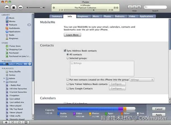 您将使用 iTunes 同步和管理您的 iPhone 内容,如照片、音乐、视频、联系人等。