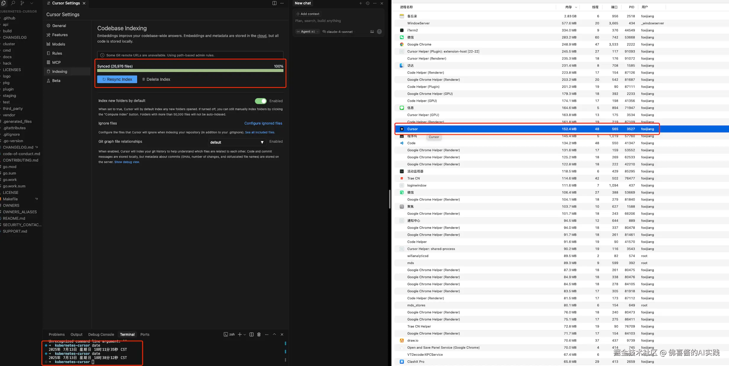基于490万行Kubernetes代码库的真实测试,全面对比Augment与Cursor两大AI代码编辑器。详细分析200k vs 128k上下文窗口的实际差异、量化向量搜索vs传统检索的性能表现,以及索引速度对比。为个人开发者以及不同规模团队提供基于数据的技术选型指南。