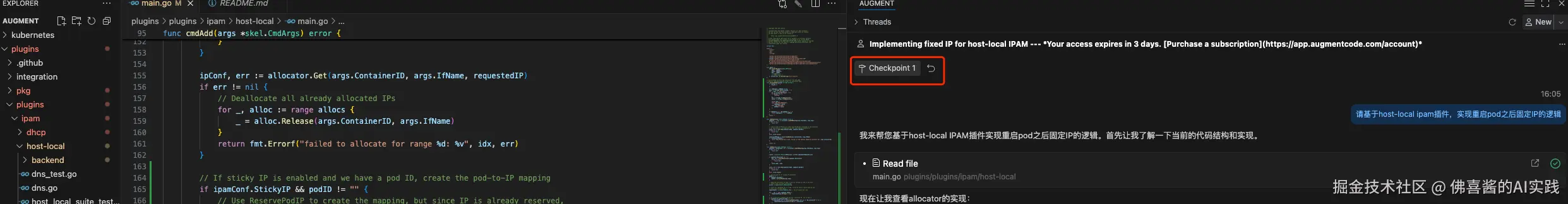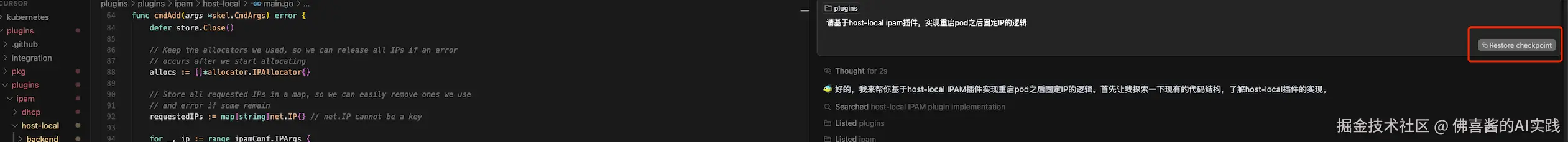 这两种方式,个人还是更偏向于Cursor,用户的一次对话就是一个checkpoint,如果要回退就找到用户的对话即可,非常方便