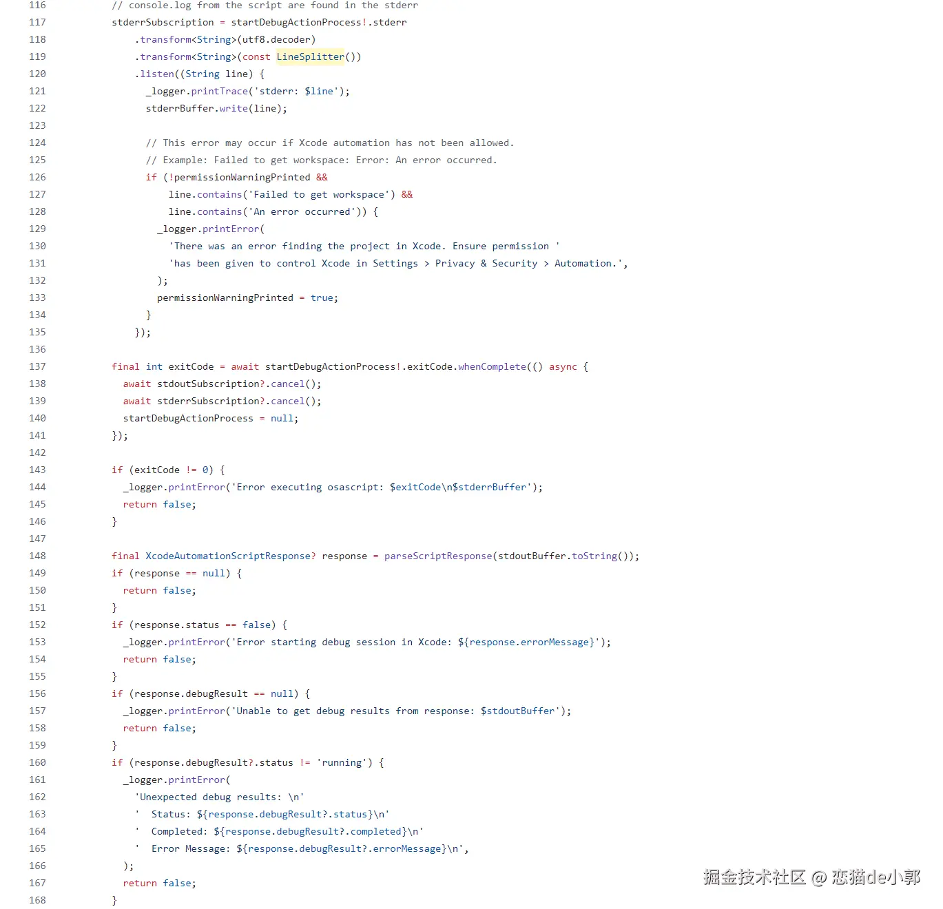 所以,虽然有 devicectl ,但是 Flutter 的 JIT 离不开 debugserver 的权限支持,所以 Flutter 官方针对 Xcode 15 的场景进行了一些临时处理,当开发者运行 flutter run 时,流程会是: