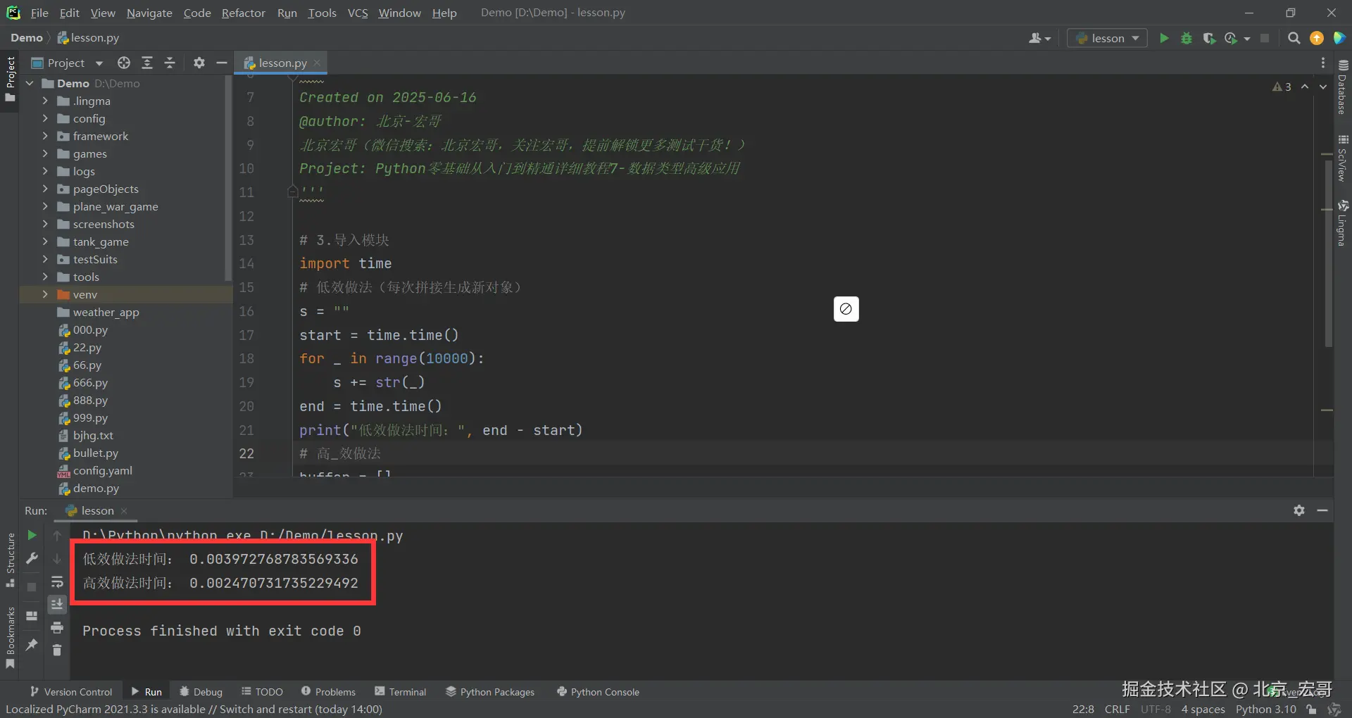 3. 性能优化秘籍 频繁拼接字符串时,先暂存到列表再合并,效率提升百倍: