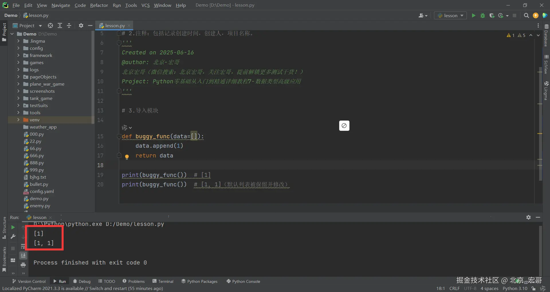 print(buggy_func()) # [1, 1](默认列表被保留并修改)