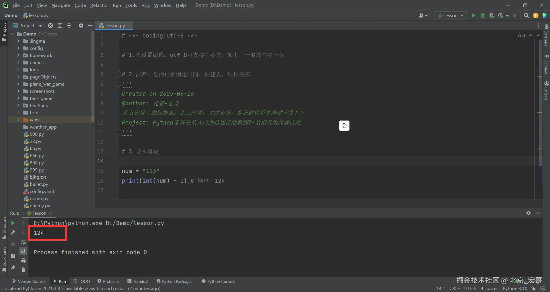 # 2.注释:包括记录创建时间,创建人,项目名称。