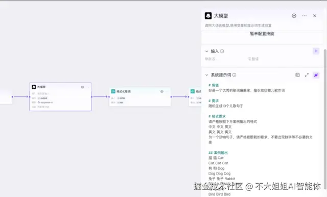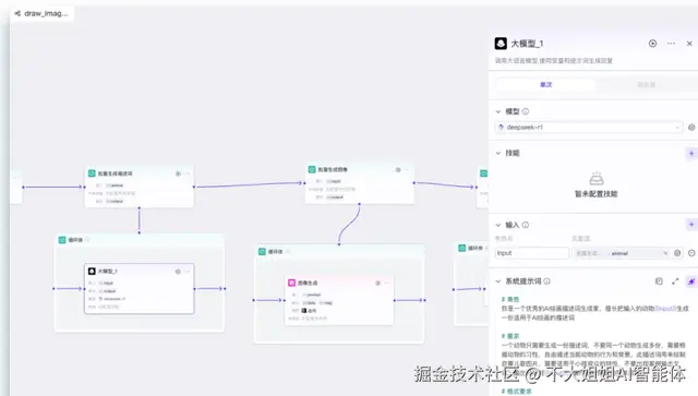 1.通过Coze大模型批量生成动物主题儿歌文案2.用代码节点处理文本生成绘画描述词3.调用图像生成节点绘制卡通素材4.集成剪映云端草稿创建功能自动组合素材
