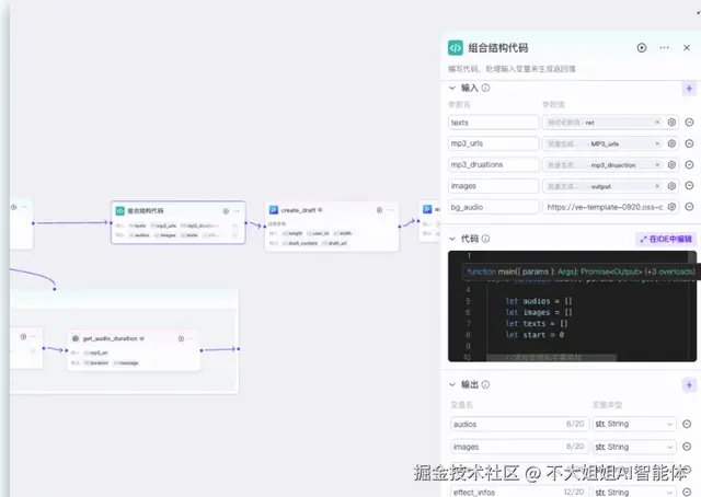 通过代码节点自动编排画面、字幕、背景音乐时间轴