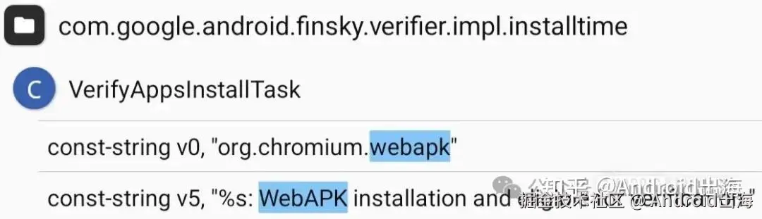 我们还发现了暗示将对 WebAPK 进行扫描的代码片段:
