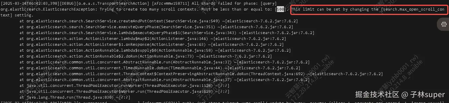 由于 bug 的原因,AtomicInteger openScrollContexts 会减少为负数,最后溢出为 Int_Max,这将使 open_scroll_contexts > max_open_scroll_context 始终为 true,无法再创建滚动游标。