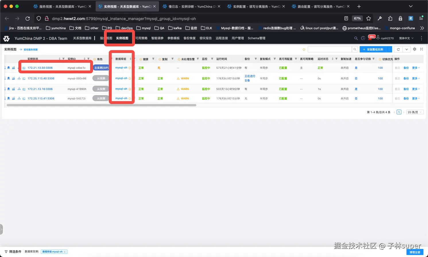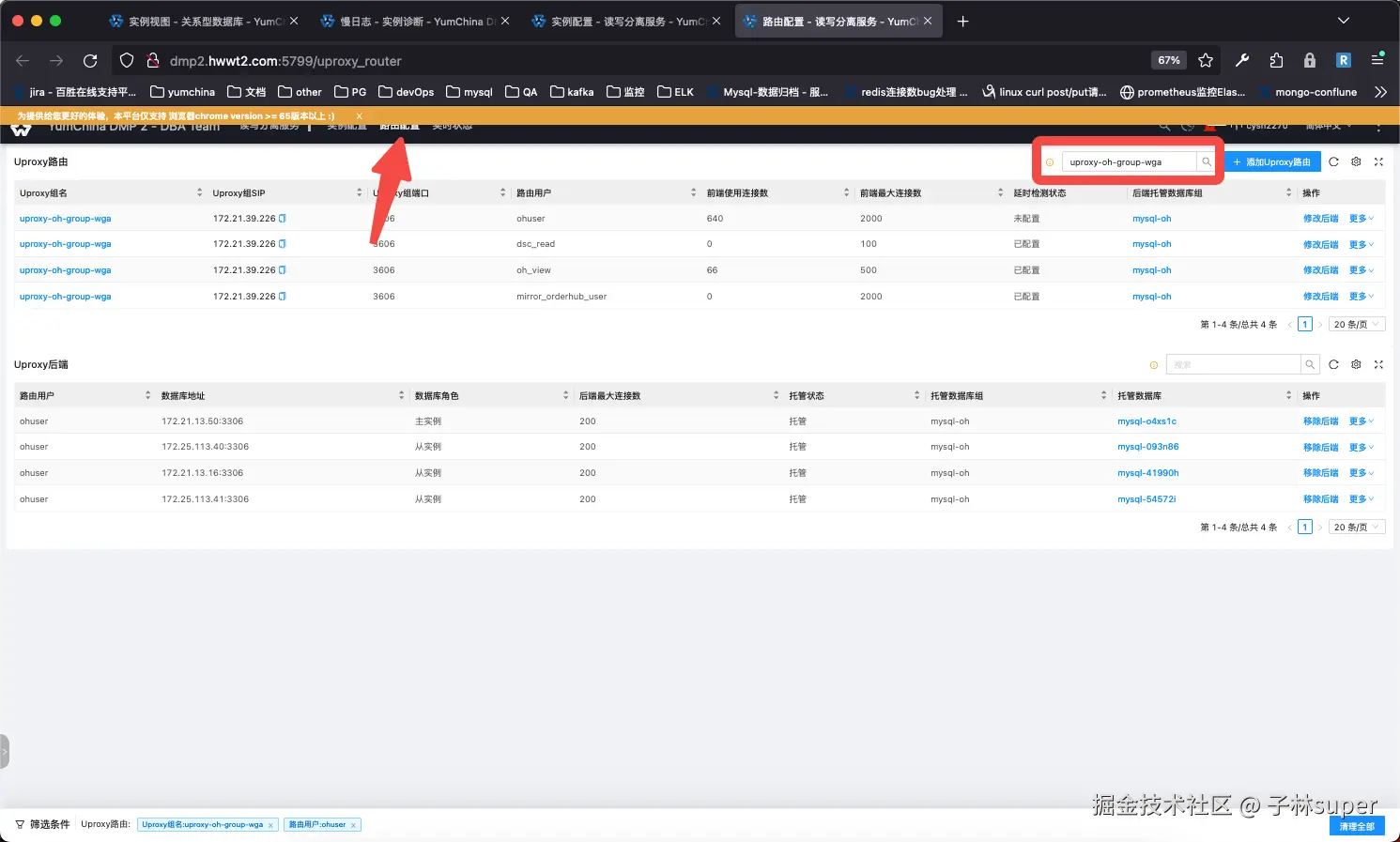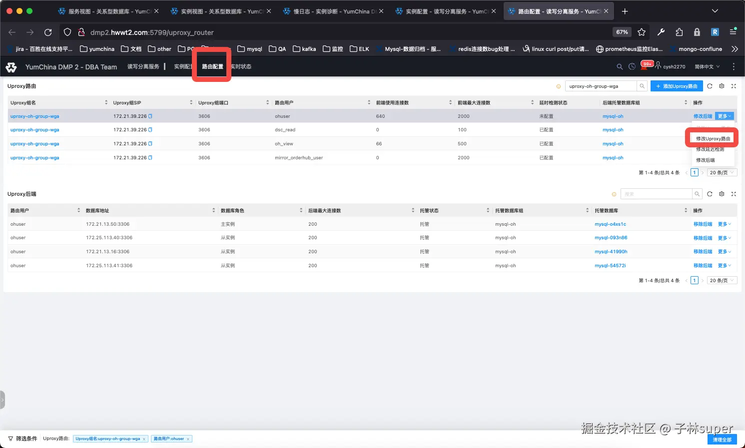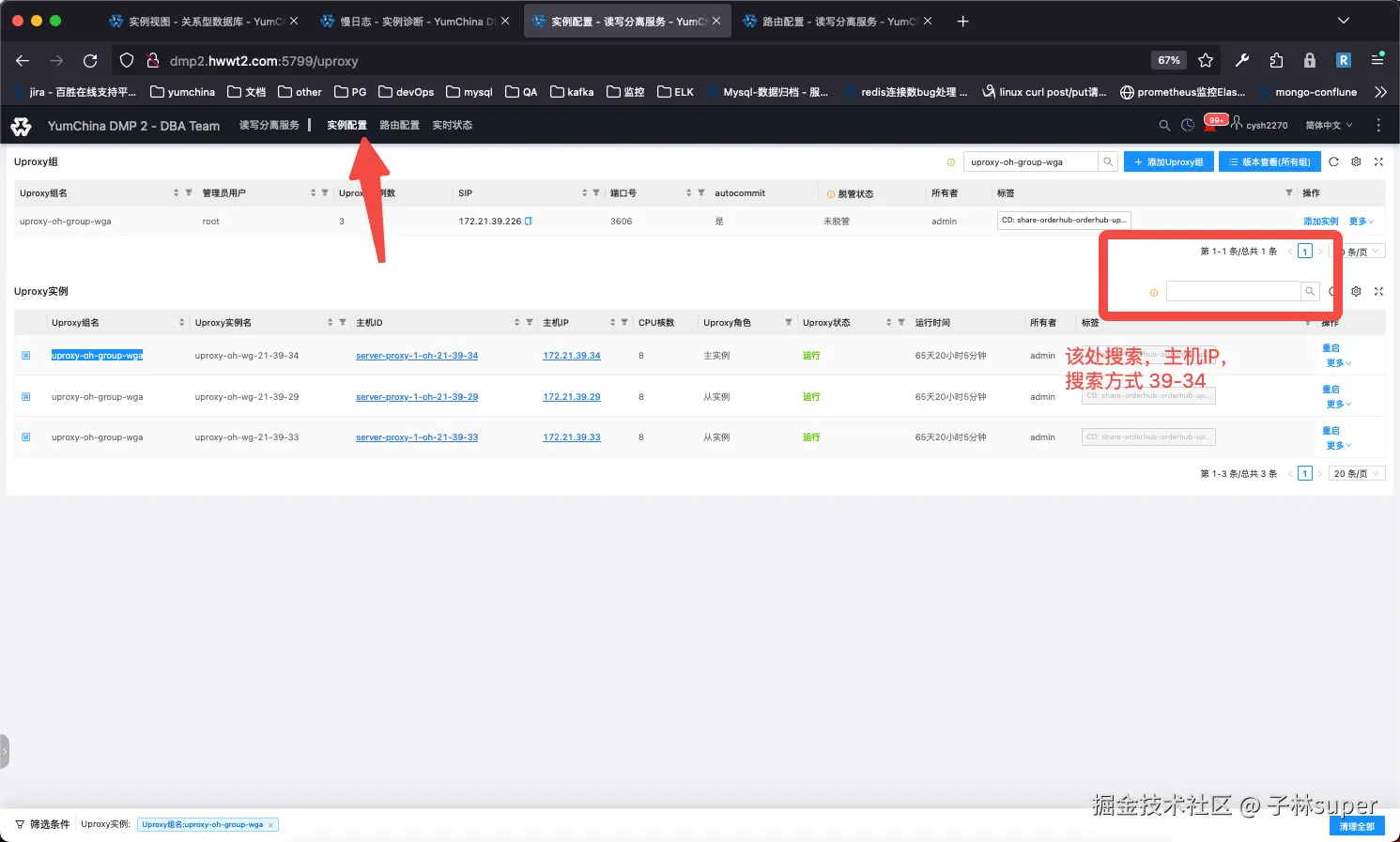 找到mysql实例信息,对比uproxy中的主从库IP