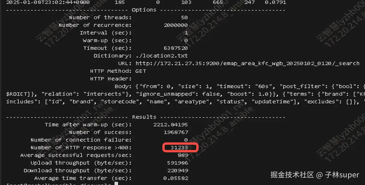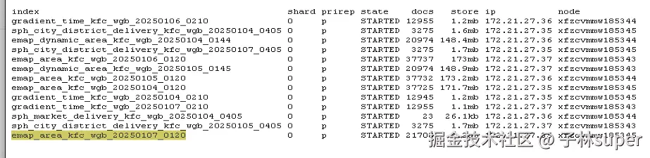 emap_area_kfc_wgb_20250101_0120 ~ emap_area_kfc_wgb_20250110_0120 共10个索引,并行进行压测。
