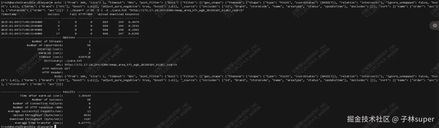 (初次压测忘记截图,补充 esperf 压测截图)