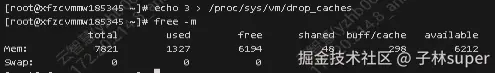es加载数据使用的是堆外内存,使用free -m 命令查看缓存清除前后的区别:
