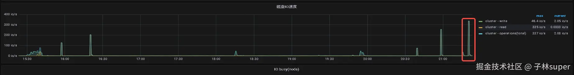 压测过程中观察 grafana 监控,查看被压测的集群的磁盘io压力状态: