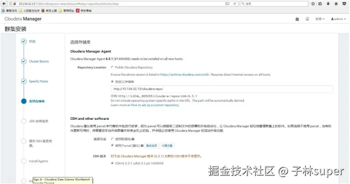 点击更多选项 输入:http://172.20.230.105/parcel-repo/