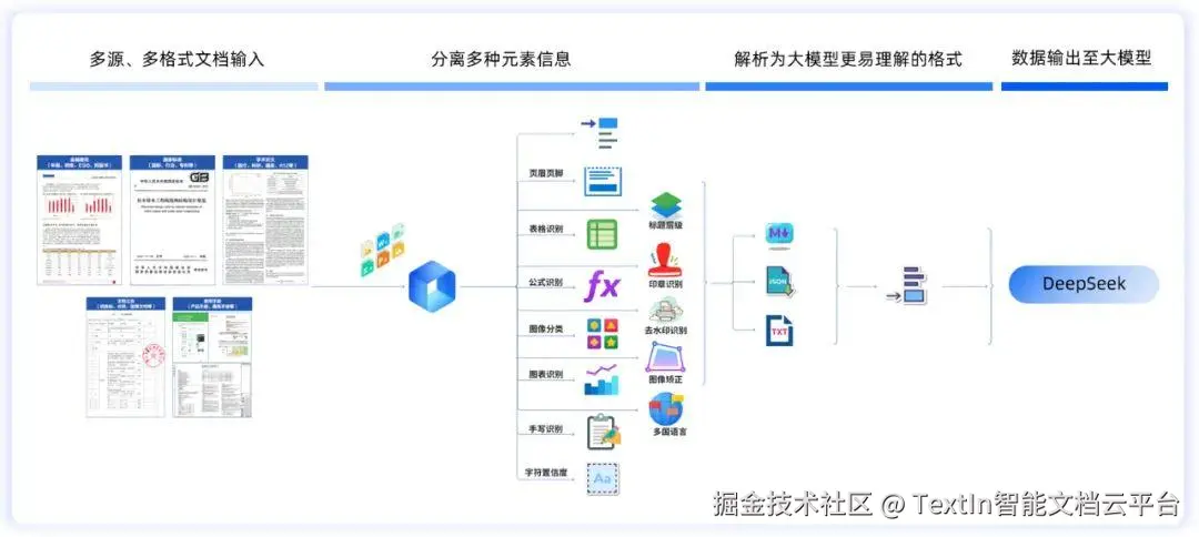 接下来,可以将 TextIn 解析的结果导出为 TXT 或 Markdown 文件, 然后上传到 DeepSeek 进行识别,准确度非常高,后续对话效果也更好。