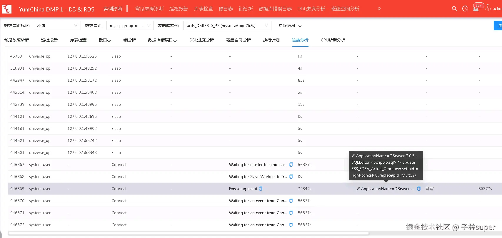 查看当前卡住的SQL