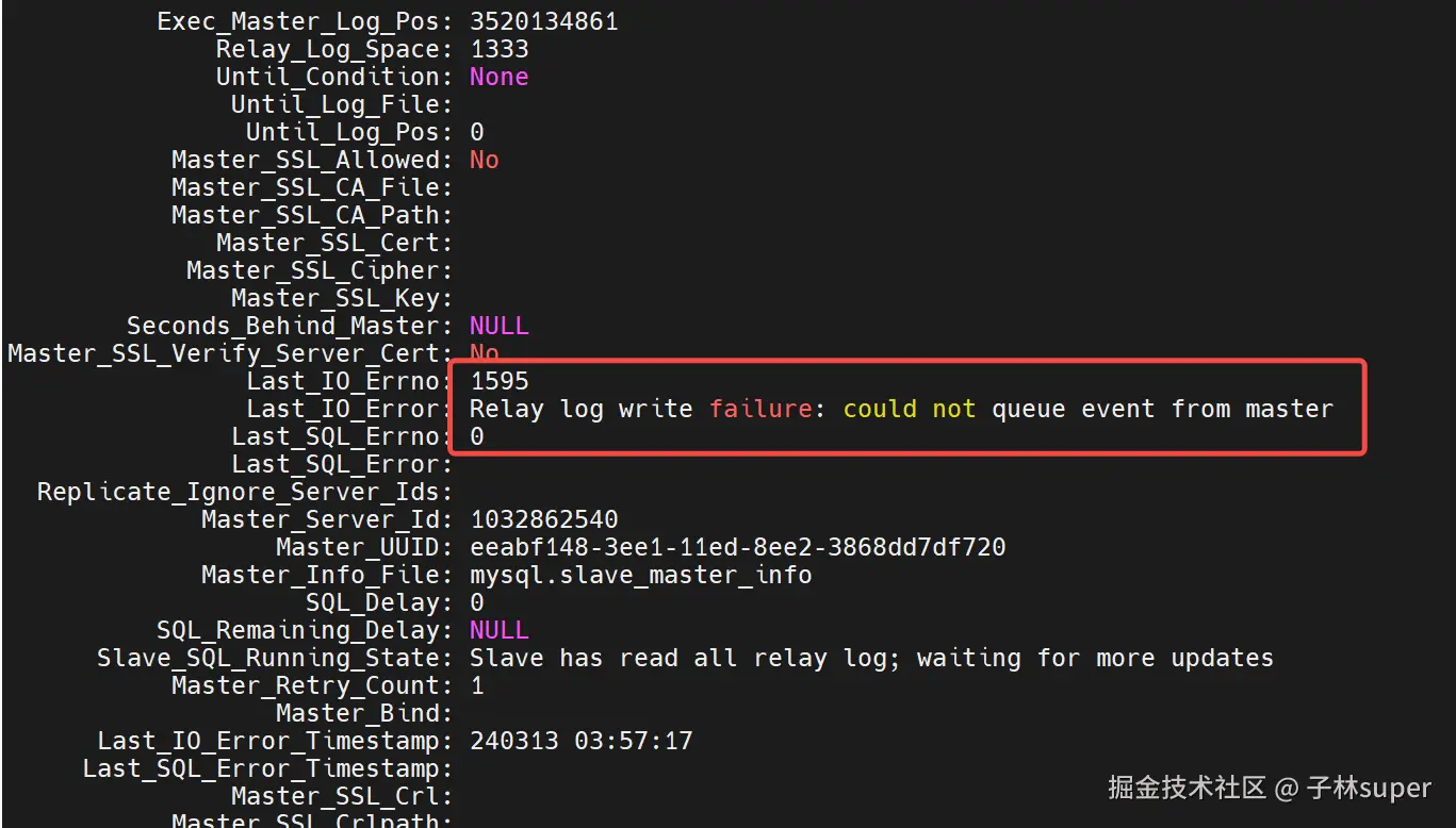 2.2 Relay log write failure: could not queue event from master