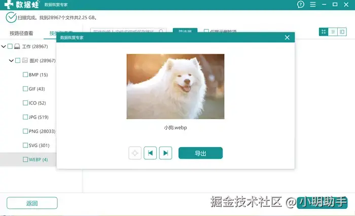 - 扫描出来的图片文件有缩略图显示,其他类型的文件也可以通过切换文件查看模式,获得其扫描出来的基本信息。