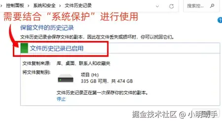 第五招(找回内容用):启用文件历史记录