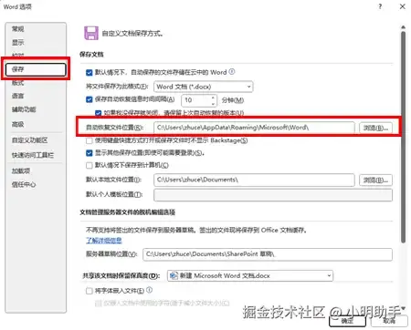 在Word软件中的左上角点击“文件”,然后在左边列表下点击“选项”,我们就能进入“Word选项”页面了。在左边点击“保存”,查看自动保存文件的存放位置,直接复制到“此电脑”中进行搜索即可。